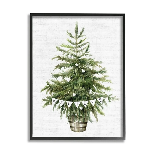 Stupell Industries Holiday Green Fir Tree with Believe Phrase Framed Wall Art