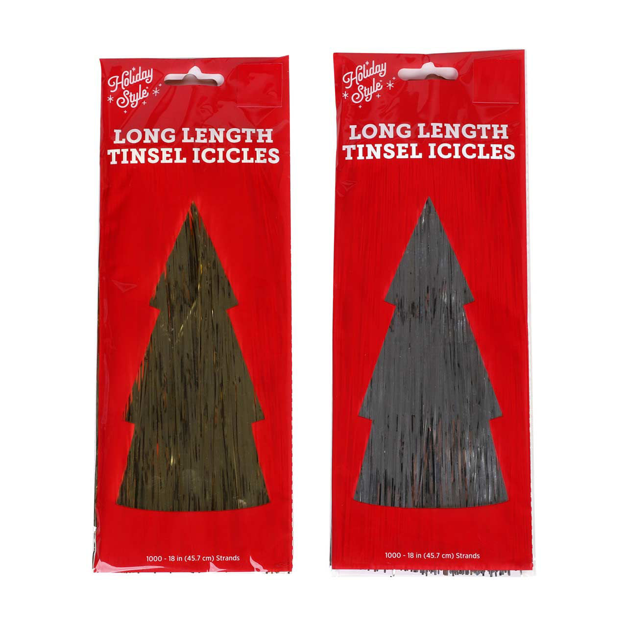 Holiday Style Long Length Tinsel Icicles, 18 in, 1000 ct