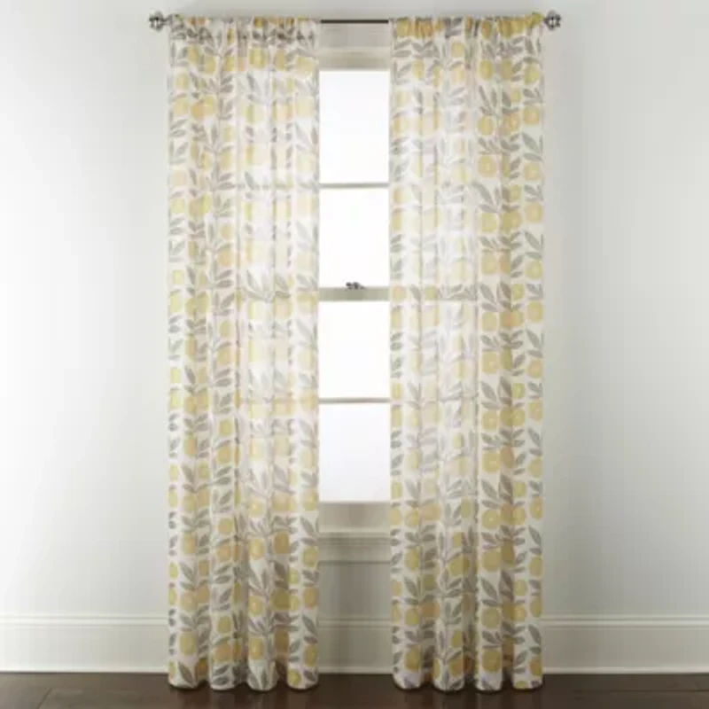 Home Expressions Remy Floral Rod Pocket Sheer Single Curtain Panel