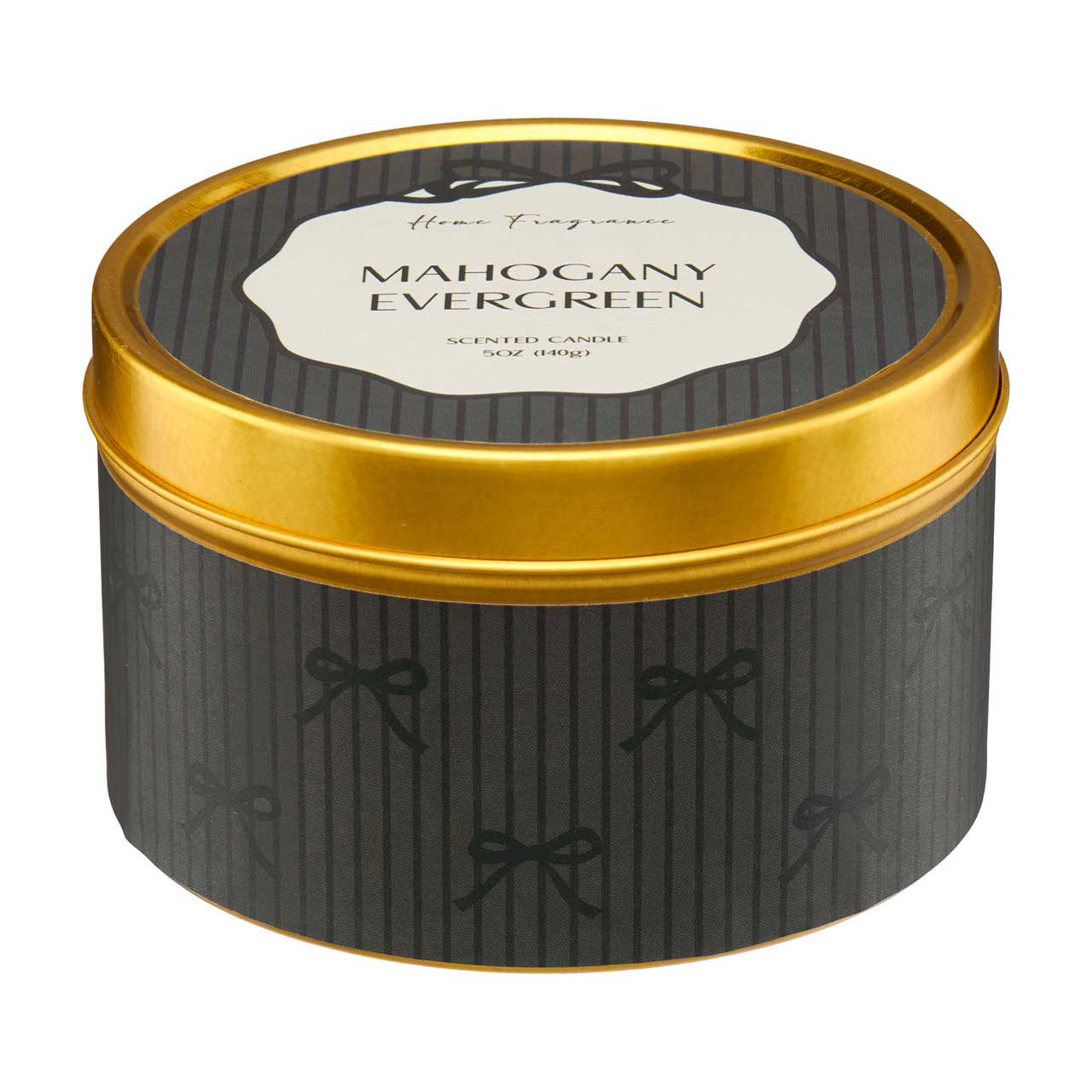Elevate your home ambiance with the rich and inviting scent of our Home Fragrance Mahogany Evergreen Scented Candle. This luxurious 5 oz candle is designed to infuse your space with a harmonious blend of warm mahogany and fresh evergreen, creating a perfect atmosphere for relaxation and rejuvenation. The candle comes in an elegant tin container, adorned with a sophisticated black and gold design that adds a touch of class to any decor. The gold lid not only keeps the candle dust-free when not in use but also makes it a stylish accessory for display. This compact size makes it ideal for any room in the house, whether it's your living room, bedroom, bathroom, or home office. Crafted from high-quality wax and infused with premium fragrance oils, the Mahogany Evergreen candle burns cleanly and evenly, providing hours of delightful aroma. The scent profile combines the deep, woodsy notes of mahogany with the crisp, refreshing essence of evergreen, creating a balanced fragrance that is both comforting and invigorating. Perfect for cozy nights in, festive gatherings, or as a thoughtful gift for a loved one, this scented candle is a versatile addition to your home fragrance collection. Light it up to unwind after a long day, enhance your holiday decor, or simply to enjoy the enchanting aroma it releases.