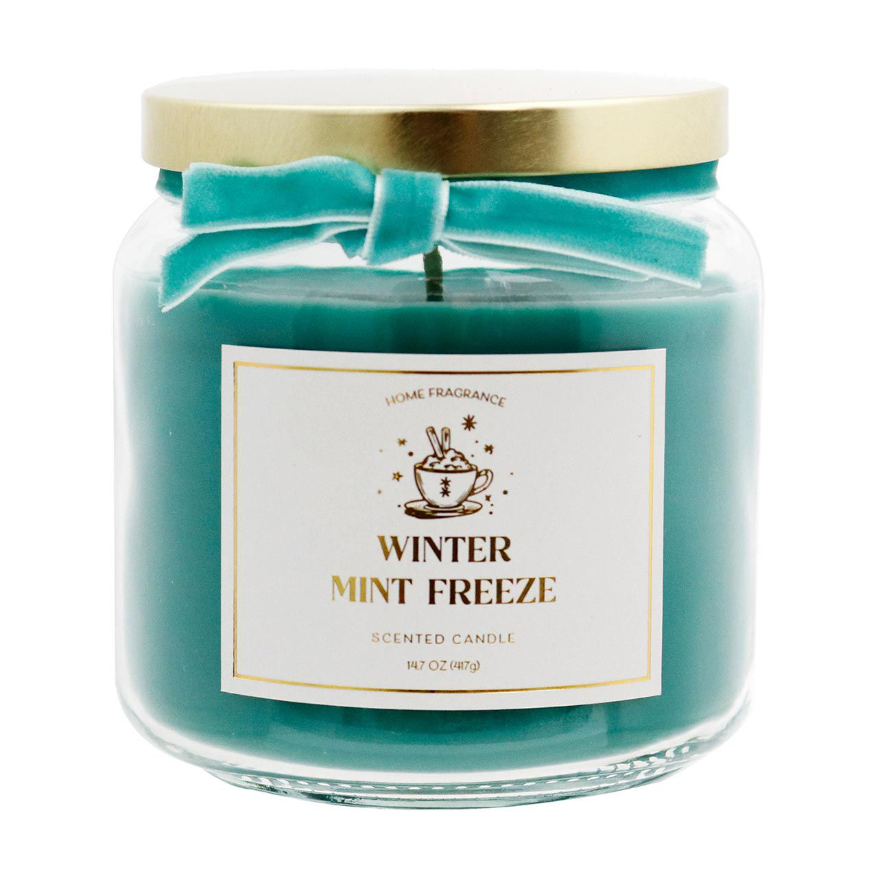 At 14.7 ounces, this generously sized candle promises hours of delightful fragrance. The Winter & Mint Freeze scent combines the crisp, invigorating essence of fresh mint with the cool, refreshing notes of winter frost, creating an atmosphere that is both soothing and revitalizing. It's the perfect blend to evoke the serene beauty of a snowy landscape, making it an ideal choice for the holiday season and beyond.