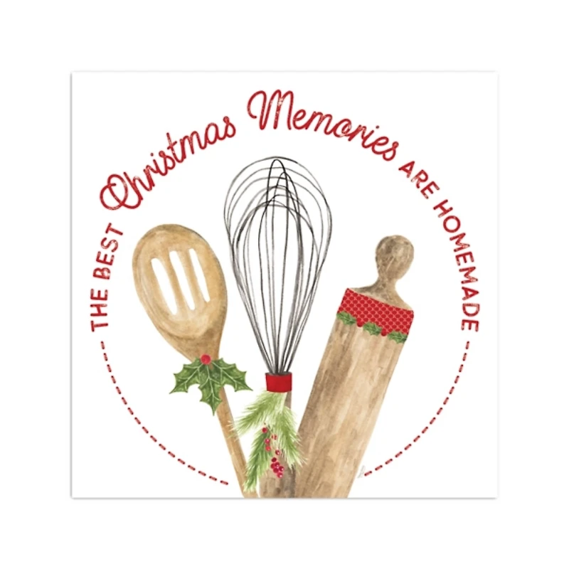 Make your kitchen look just as sweet as it smells this season! You and your family will appreciate the charm of this Homemade Christmas Memories Canvas Art Print. Art measures 20L x 1.3W x 20H in. Giclee printed on archival-grade, poly-cotton canvas Canvas stretched over solid wood Features a mixing spoon, a whisk, and a rolling pin as subject Accented with the phrase "The Best Christmas Memories Are Homemade" Hues of white, red, brown, green, and black Weight: 3.6 lbs. Hangs from back-mounted hardware Care: Dust with a soft, dry cloth. Avoid exposure to heat, direct sunlight, and moisture. This item is available at Kirklands.com only, not available in stores. Please note: this item cannot be shipped to APO/FPO addresses.