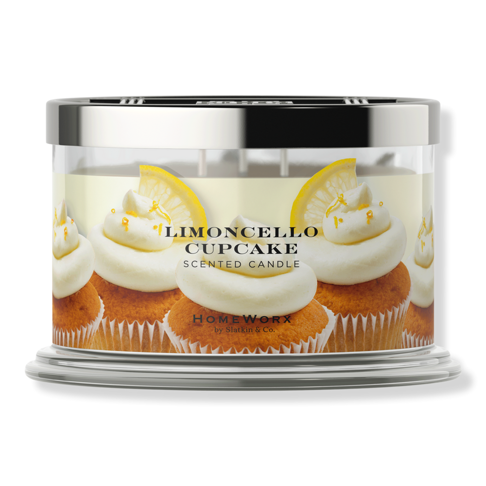 HOMEWORX LIMONCELLO CUPCAKE 18OZ. Features: Masterfully blended oils for a long-lasting fragrance experience. Proprietary wax formula to always deliver a perfect burn. One 18 oz candle. Burns 30-55 hours. Lead-free wicks and wick clips. Measures 5.5" D x 3.5" H. Glass vessel with decorative wrapped label; silver-tone metal lid with Harry's personal monogram.. Key Notes: Limoncello. Sicilian Lemons. Candied Lemons. Creamy Vanilla. Baked Cupcake. :