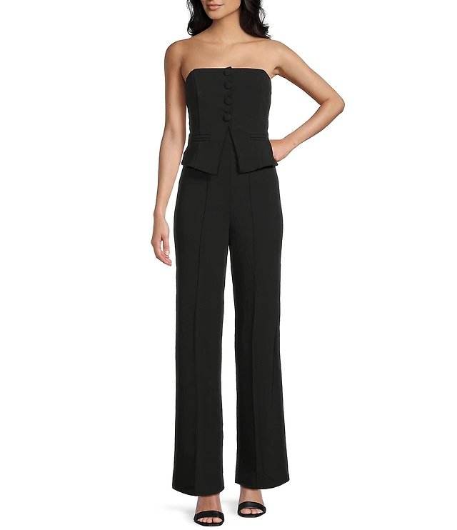 Honey and Rosie Scuba Crepe Strapless Vest Inspired Bodice Jumpsuit