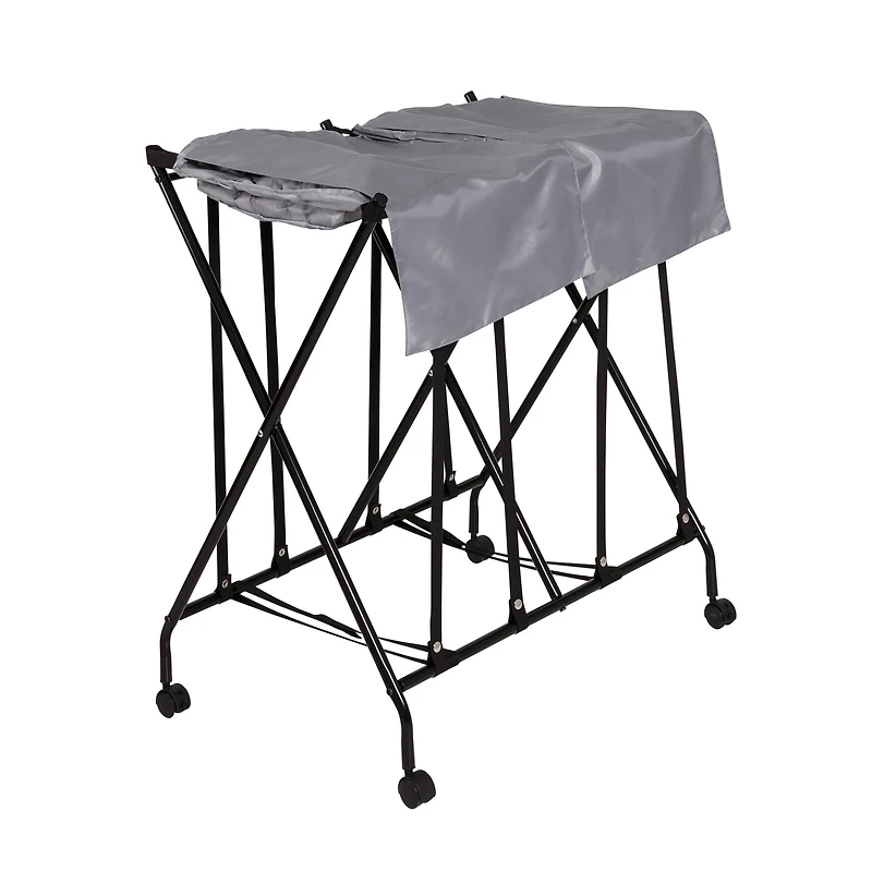 If the never-ending cycle of laundry has you down, this revolutionary double laundry hamper with wheels can help you bounce back up. Or, at the very least, bounce your clothes up and save your back! Every Double Bounce Back Hamper is equipped with two anti-microbial polycotton bags with built-in super strength elastic supports. This patented technology allows each fabric hamper to expand from 7'' to 22.5'' as it gets filled with dirty clothes. It then gradually spring your clothing back up again as you unload it — no more bending or excess reaching! Perfect for those with back issues, pregnant people, small kids learning to do laundry, or those who are just tired of digging to the bottom of the laundry bin. And the utility of this laundry organizer doesn’t stop there. The rust-resistant and foldable metal frame has 4 castor wheels, making it a modern laundry basket on wheels that is perfect for people with mobility issues since the hamper never needs to be lifted. Odor blocking, space-saving, and collapsible, the Bounce Back Hamper is the heavy-duty double laundry basket that every home needs! Details: Black, gray 30'' x 20.5'' x 33.5'' No bend hamper Holds 2 loads of laundry Foldable and expands from 7'' to 22.5'' Has 2 removable anti-microbial polycotton bags Features lid and caster wheels Rust-resistant metal frame