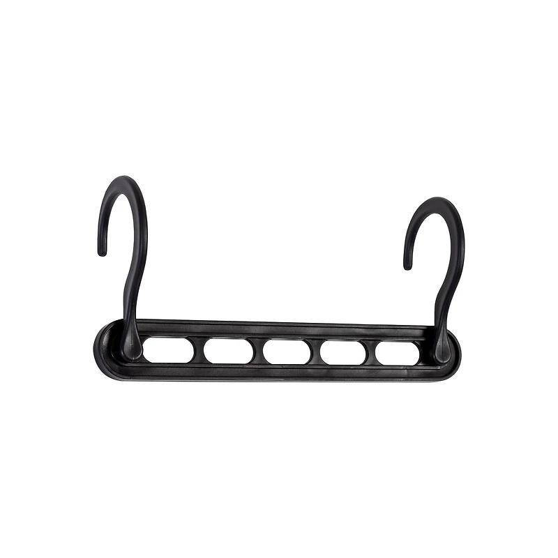 These flexible hangers can save closet space or showcase outfit options. When seasons change, reach for this collapsible hanger. It can take up to 30 pounds of woolen sweaters and heavy coats and turn them into a neat, slim line at the back of the closet, opening up room for those breezy summer camisoles and dresses.Details:Black9.25" x 0.25" x 4.5"Holds up to 30 lbs.20 hangersPlastic