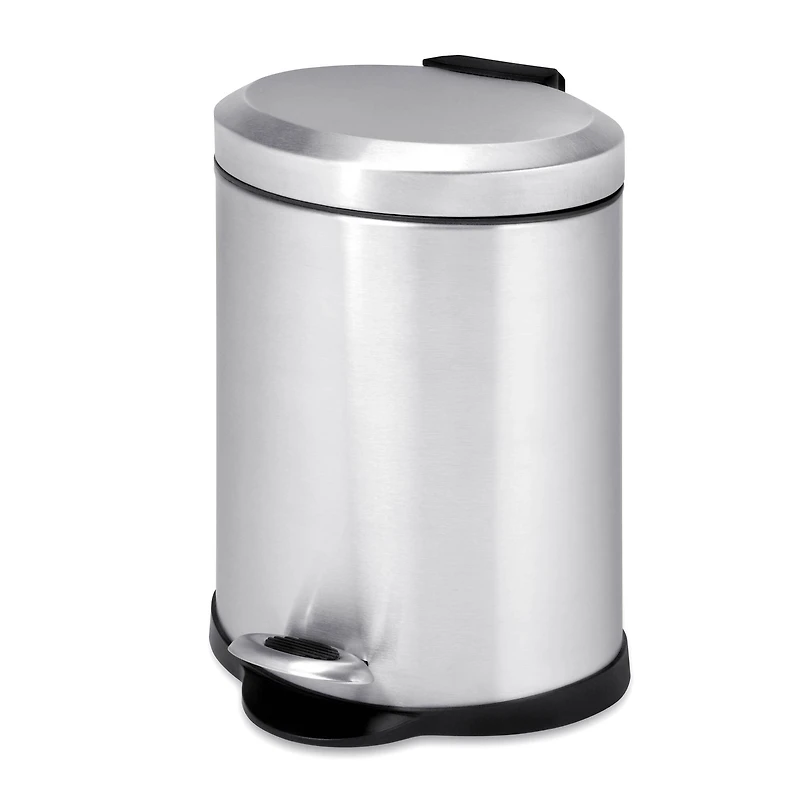 A contemporary addition to any home or office, this 5L (1.3 gallon) trash can is the perfect size for a bathroom or home office and boasts sturdy construction for daily use. A steel foot pedal provides hands-free operation to keep germs at bay. A plastic inner trash bucket is fully removable for easy emptying and cleaning. The brushed stainless, hand print resistant exterior is easy to clean and features a plastic fold down carrying handle. Details:Stainless steel9.5" x 9.5" x 13.5"5L capacity1 trash can