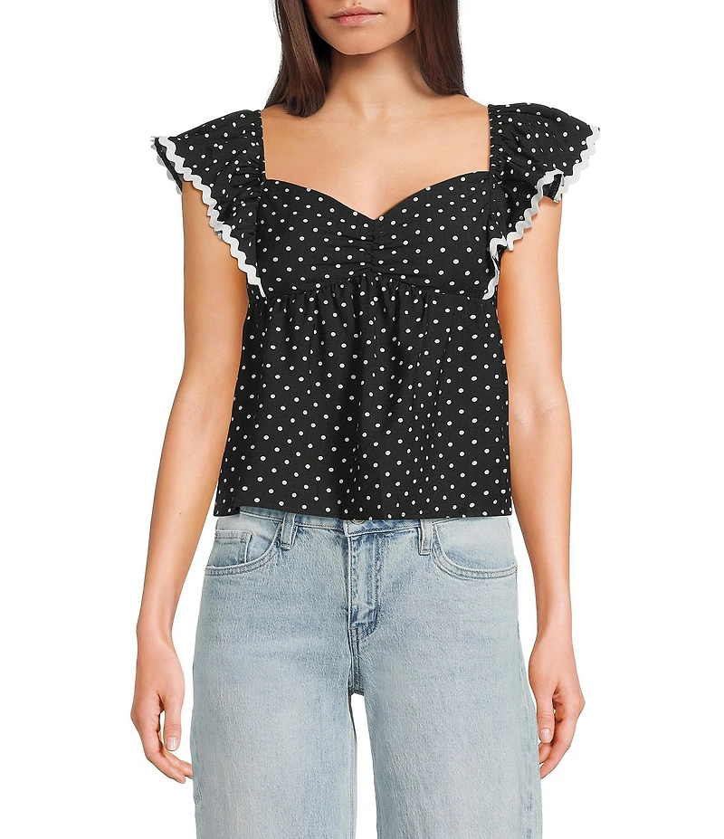 Honey & Sparkle Polka Dot Ruffle Sleeve Ric Rac Trim Top