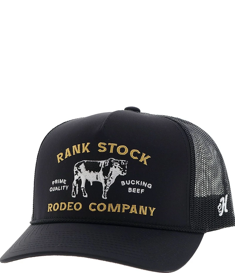 From Hooey, this hat features: Yellow and white stitching detail Front patch with "Rank Stock”, a steer design and “Rodeo Company” verbiage  5-panel styling Curved bill High profile Snap back Odessa fabric is an innovative, sleek blend, that resists those nasty sweat rings and even repels water Spot clean One size Imported.
