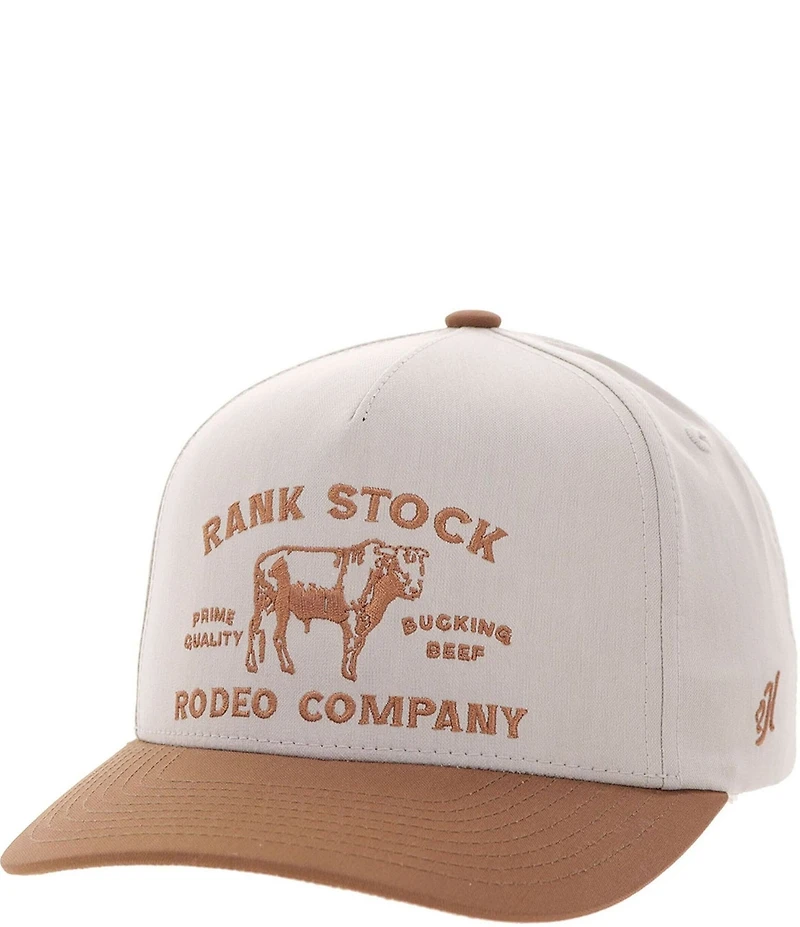 From Hooey, this hat features: Front patch with "Rank Stock”, a steer design and “Rodeo Company” verbiage 5-panel styling Curved bill High profile Snap back Spot clean One size Imported.
