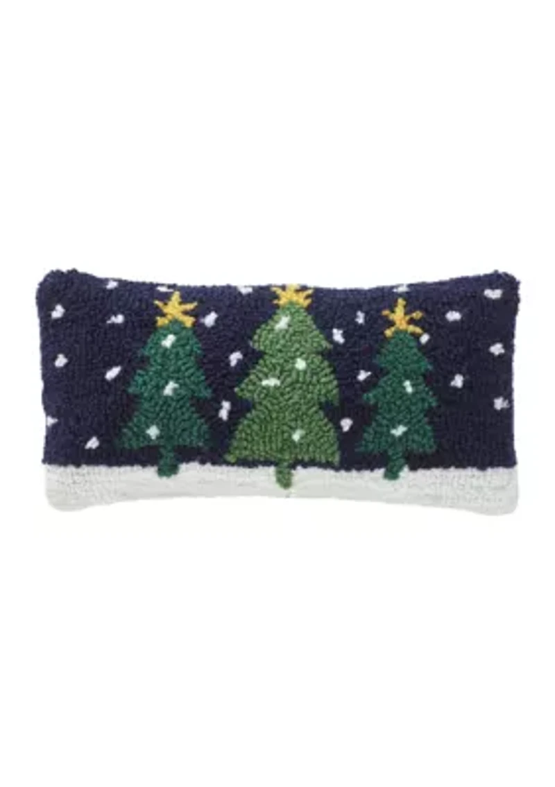 Three trees stand out along a snowy background on this festive throw pillow from C&F. Imported Product Specifications 12" L x 6" W Material & Care Acrylic Spot clean only