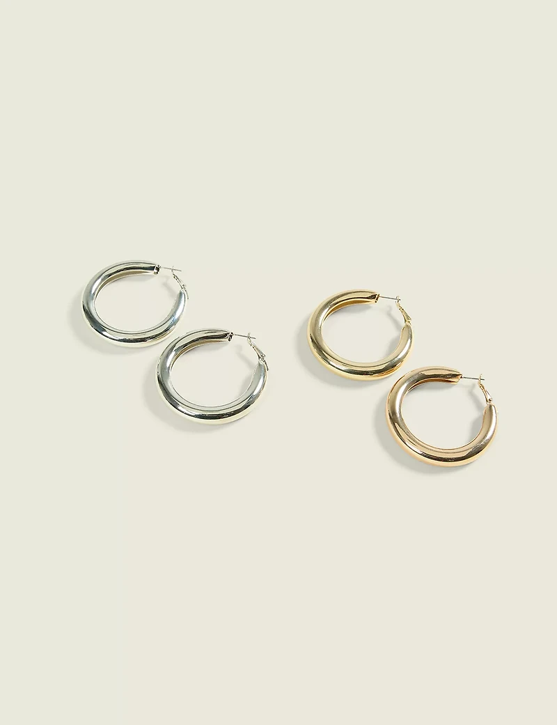 Available in Plus Size Two for the price of one, a timeless gold and silver hoop 2-pack to go with any outfit. FIT: Secure omega lever-back closures 1-1/4'' MATERIALS: NICKEL-FREE: Our jewelry is nickel-free for sensitive skin Spot Clean 100% Iron Item Number #415288 Imported Plus Size Jewelry ". Plus Size Hoop Earring 2-Pack, in Mixed Metal, Women's, Lane Bryant