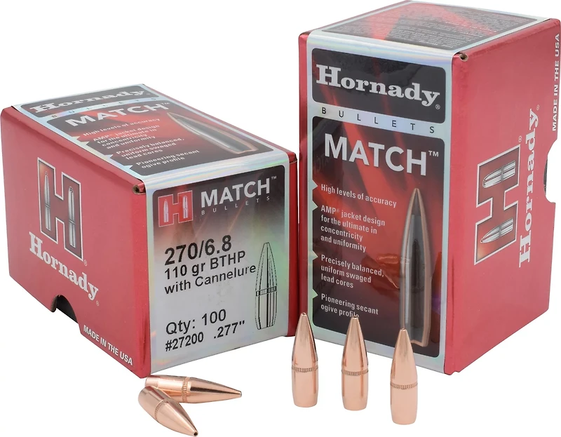 Hornady BTHP 6.8mm 110-Grain Bullets with Cannelure