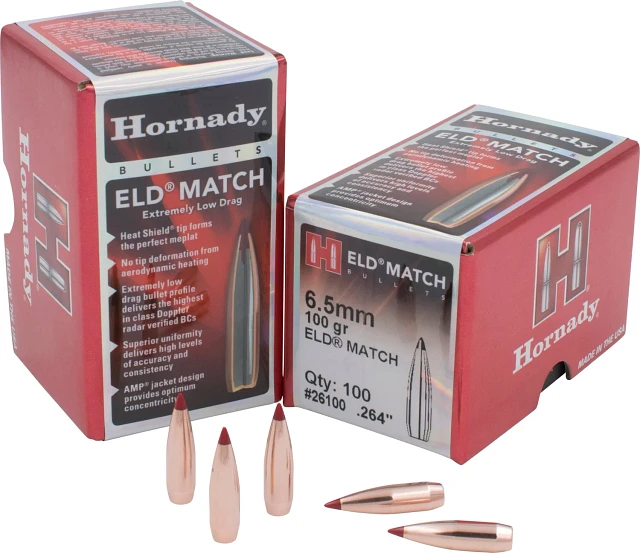 Hornady ELD Match 6.5mm .264 100-Grain Reloading Bullets - 100 Rounds