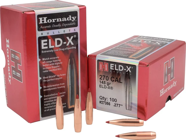 Hornady ELD-X 270 Winchester .277 145-Grain Reloading Bullets - 100 Rounds