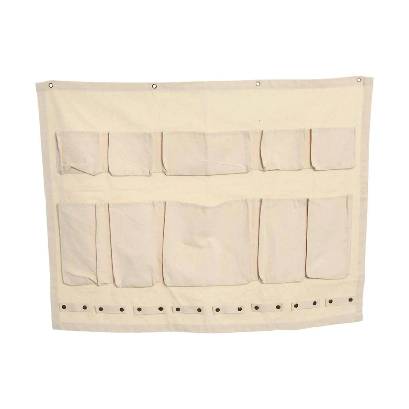 Maximize space in an entryway or workshop with this thoughtfully designed wall organizer. Utilize the 10 pockets for anything from craft supplies and gardening tools to everyday items that need to be kept at arm's reach. Organizer is made from canvas and steel.Details:Off-white36" x 1" x 28"10 pocketsCanvas and steelFor indoor use