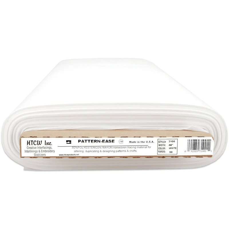 HTCW Pattern-Ease Tracing Material is a non-woven tracing material ideal for altering, duplicating, and designing patterns and crafts. Stronger and more opaque than paper, this material will help you preserve your patterns to use again and again.Details:White46" x 50yd.Polyester, cellulose