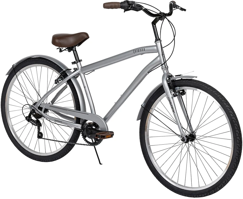 Take a nice, casual bike ride with friends and family on the Huffy Men's Sienna 27.5 in 7-Speed Comfort Hybrid Bike. Designed with a Perfect Fit™ steel frame that accommodates different heights and a linear pull braking system that makes stopping a breeze, this bike is also engineered with spring saddle seating that ensures you're comfortable on your ride. The 7-speed configuration boasts smooth shifting for various inclines.