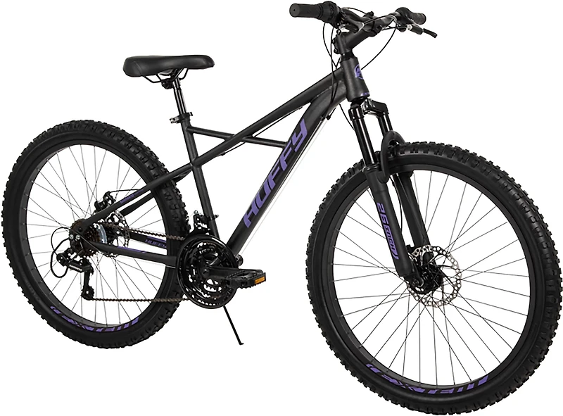 Make quick work of difficult terrain with the Huffy Women's Extent 26-in 18-Speed Mountain Bike. This mountain bike has 26 inch wheels with wide, knobby tires that help you keep your grip over dirt, grass and mud. A front suspension fork absorbs bumps and gives a smooth ride, while disc brakes and a Shimano rear derailleur ensure that shifting and stopping are just as easy as the ride. The adjustable seat makes it easy to accommodate riders of different heights.