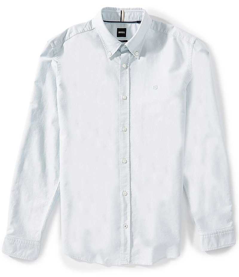 From Hugo Boss, this shirt features: Button-down collar Long sleeves Button-front closure Small double "B" embroidered patch on the left side of chest Rounded hem Slim fit Cotton Machine wash/line dry Imported.