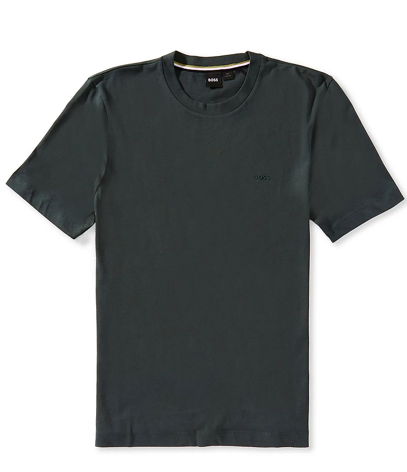 From BOSS by Hugo Boss, this t-shirt features: Crew neckline Short sleeves "BOSS" logo on the left side of chest Straight hem Pullover construction Cotton/elastane Machine wash/tumble dry Imported.