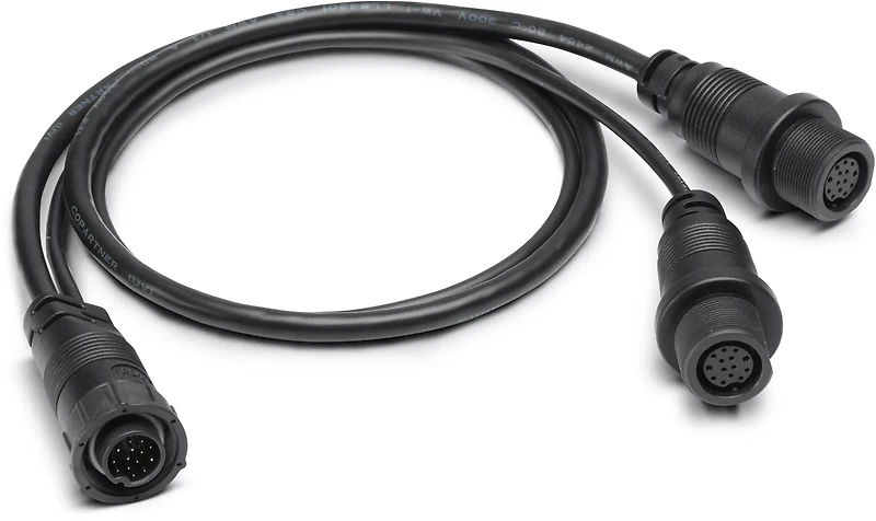 - Y-cable design allows 2 side imaging transducers to be connected and act as 1 port for when boat hulls and transducer obstructions require separate transducers