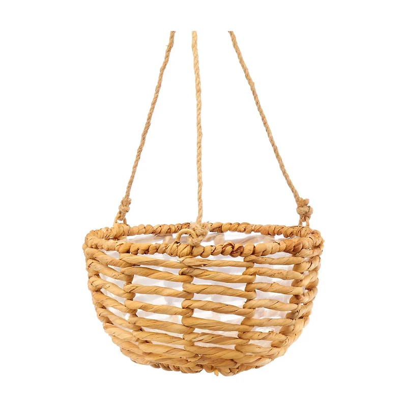 Inside, the planter is lined with a plastic layer to protect the hyacinth material from moisture, extending its lifespan and maintaining its charming appearance. This lining also makes planting and watering easy and mess-free.