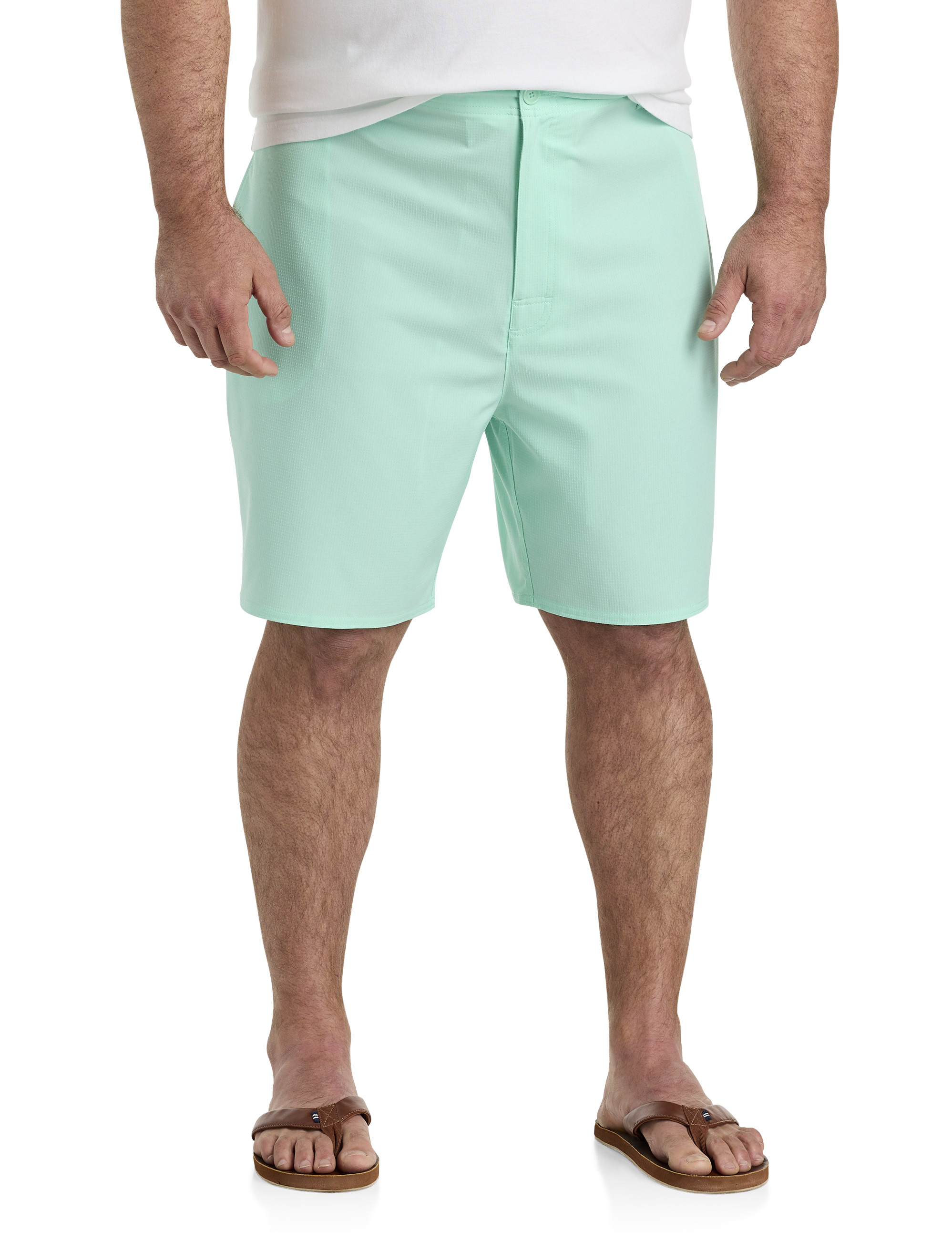 Made from an eco-friendly recycled polyester blend with a generous helping of added stretch, these swim trunks are a must have. Designed at DXL with proper proportions and an ideal fit for Big and Tall guys, the quick-dry fabrication wicks away moisture so you can easily transition from beach to bar and beyond and the subtle grid pattern has a timeless appeal. Plus, UPF sun protection keeps you safe from harmful rays so you can lay (or play) even longer.