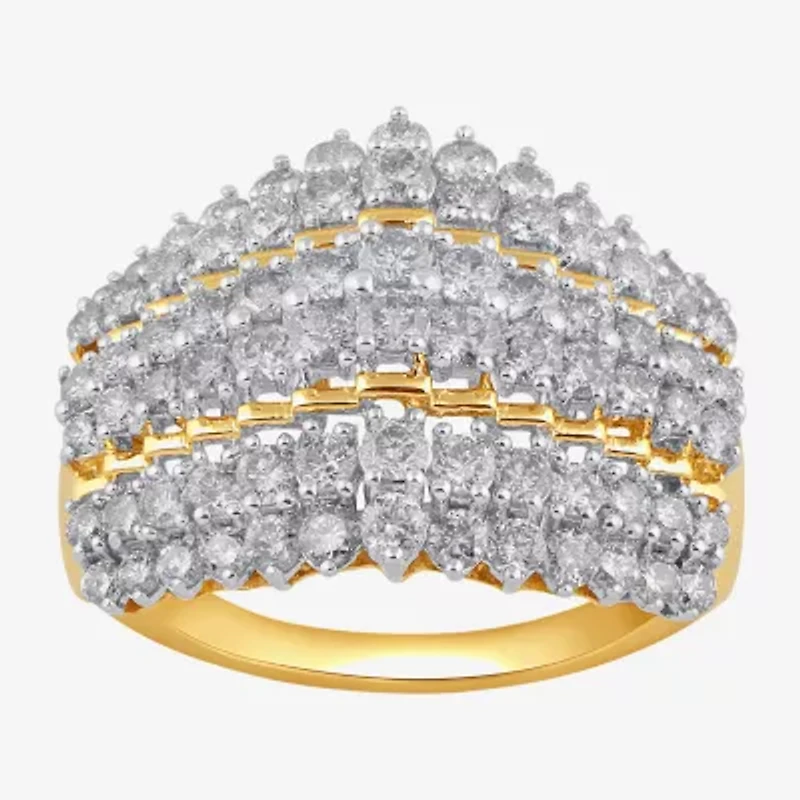 (I, I2) Womens 2 CT. T.W. Lab Grown White Diamond 14K Gold Over Silver Round Band