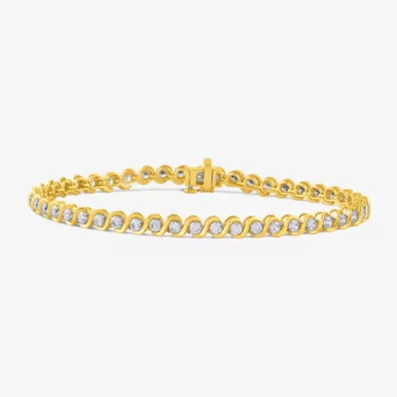 (I / I2) Womens 3 CT. T.W. Lab Grown White Diamond 14K Gold Over Silver 7.25 Inch Tennis Bracelet