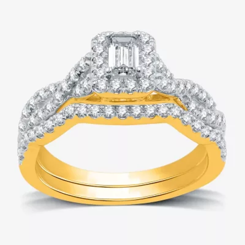 I Said Yes (H-I / I1) Womens 1 CT. T.W. Lab Grown White Diamond Sterling Silver or 14K Gold Over Side Stone Halo Bridal Set