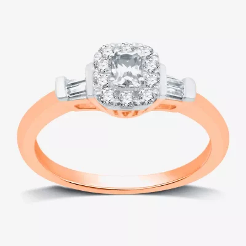 I Said Yes (H-I / I1) Womens 1/2 CT. T.W. Lab Grown White Diamond Sterling Silver or 14K Gold Over Cushion Side Stone Halo Engagement Ring in Chattanooga, TN