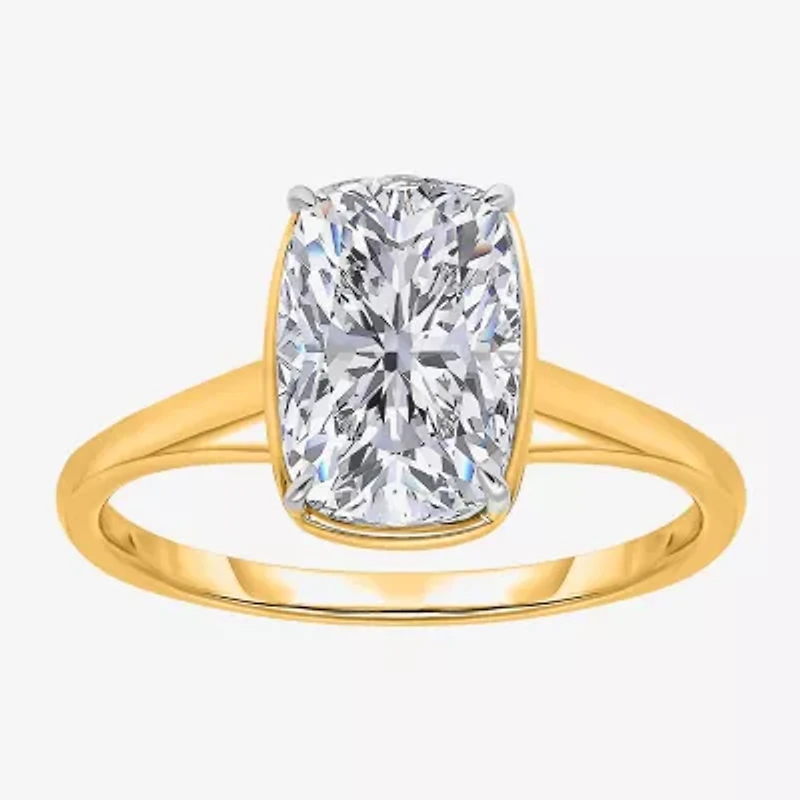 (I / Si2) Womens 3 CT. T.W. Lab Grown White Diamond 14K Gold Cushion Solitaire Engagement Ring