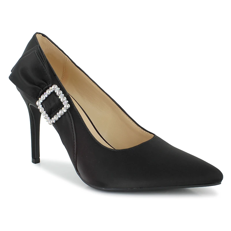 Step into sophistication in the I.D. Required Precious heel. Designed with elegance in mind, a bow detail with rhinestoned buckle accent elevates the classic pointed-toe and stiletto style. Pairs perfectly with your favorite dress or trousers to complete your polished look.