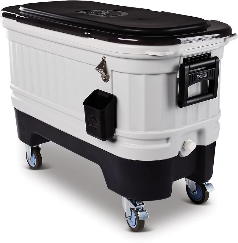 Get the party started with the Igloo Party Bar 124 qt Cooler. Constructed with a variety of durable materials, this cooler uses Ultratherm™ insulation to provide long-lasting ice retention, while the removable base and wheels let you turn the Party Bar into a conventional cooler. The heavy-duty swing-up handles let you move the cooler with ease, and the heavy-duty locking caster wheels ensure mobility.