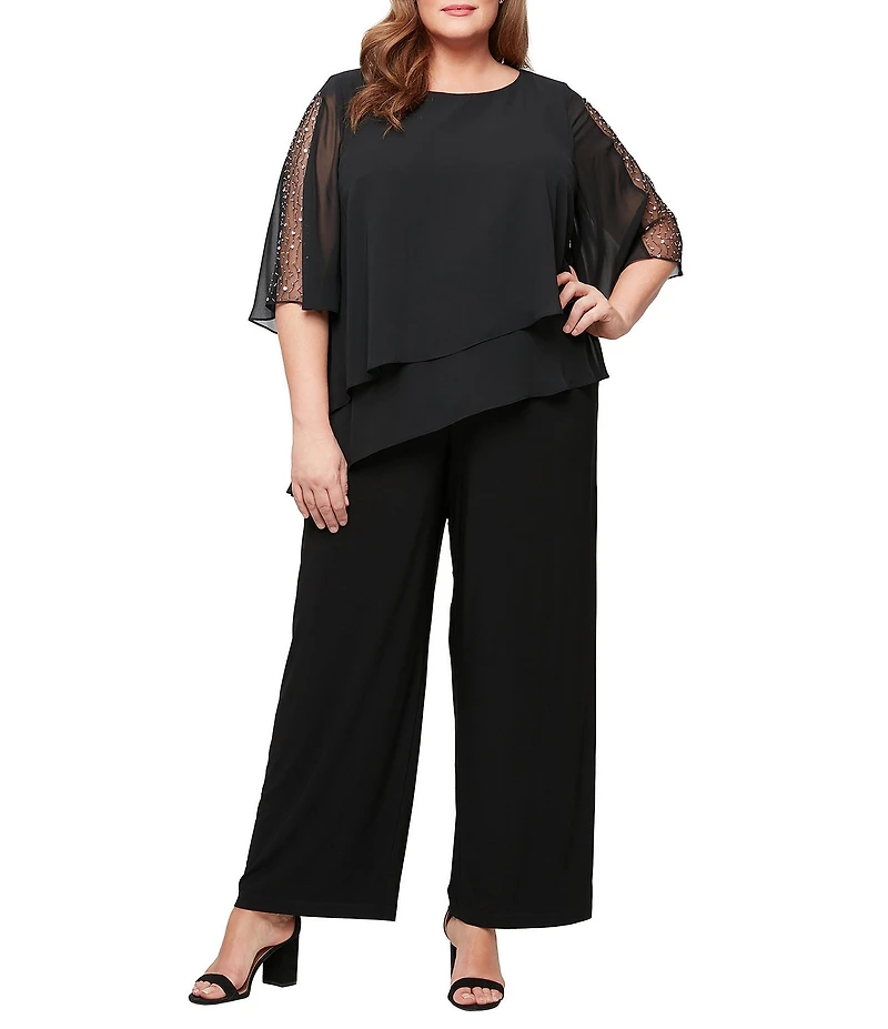 Ignite Evenings Plus Size Scoop Neck Double Tier Overlay Jumpsuit