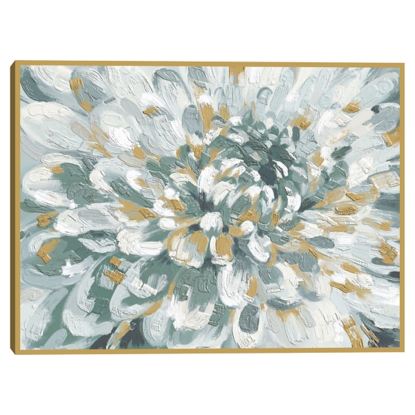 This Impasto Bloom Framed Canvas Art Print bursts with sculpted petals in soft blues, whites, and golds, each stroke alive with energy! It will add a bold beauty to any wall. Overall dimensions Width: 41 in. Depth: 1.5 in. Height: 31 in. Printed on stretched, polycotton blend canvas Gold frame around wrapped canvas Features a floral subject in impasto style Hues of blue, white, and white Weight: 9 lbs. Hangs from back-mounted hardware; sawtooth hangers included Care: Dust with a soft, dry cloth. This item is available at Kirklands.com only, not available in stores. Please note: this item cannot be shipped to APO/FPO addresses. WARNING: Cancer and Reproductive Harm - For more information go to www.P65Warnings.ca.gov .
