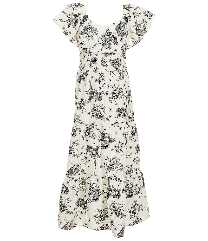 I.N. Girl Big Girls Flutter Sleeve Paris Toile Printed Maxi Dress