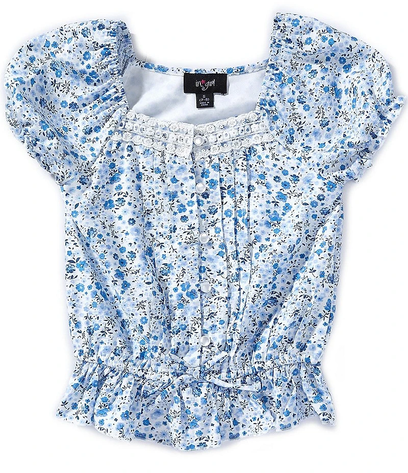 I.N. Girl Big Girls Puffed Sleeve Ditsy Floral Printed Sweetheart Neckline Woven Top