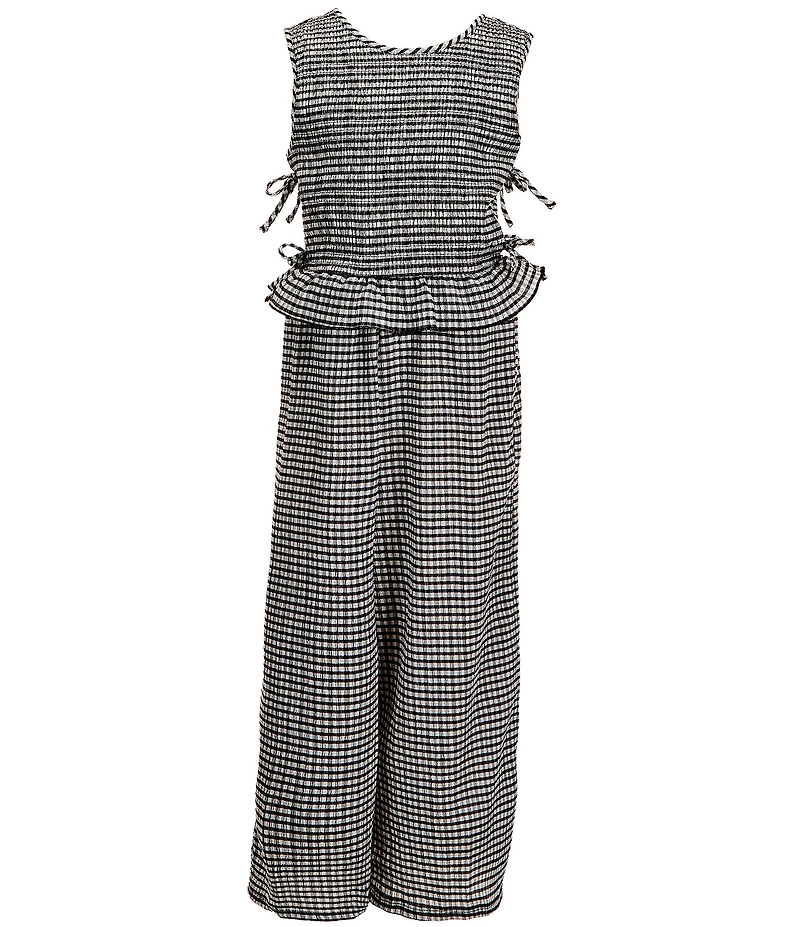 I.N. Girl Big Girls Sleeveless Gingham Print Smocked Bodice Peplum Jumpsuit