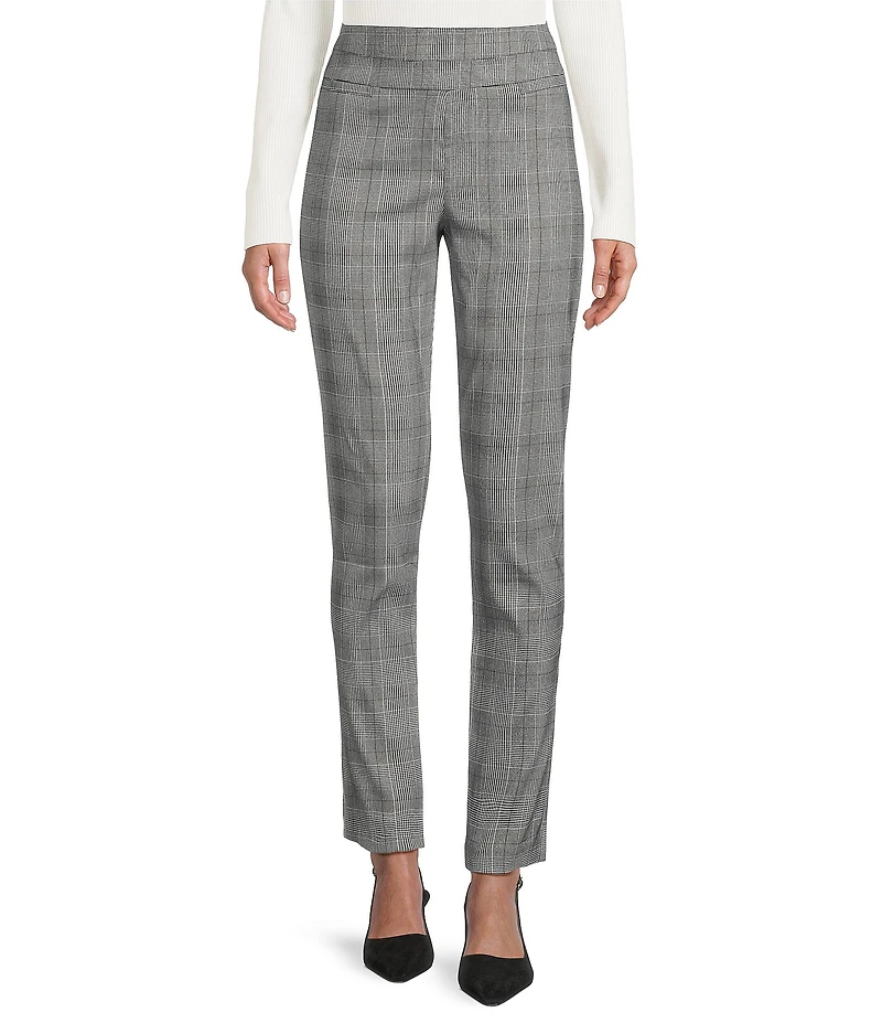 From I.N. San Francisco, these pants features: Allover plaid print Mid rise Side pockets Flat front Full-length Skinny fit Pull-on styling 29"inseam Polyester/rayon/nylon/spandex Machine wash/line dry Imported.