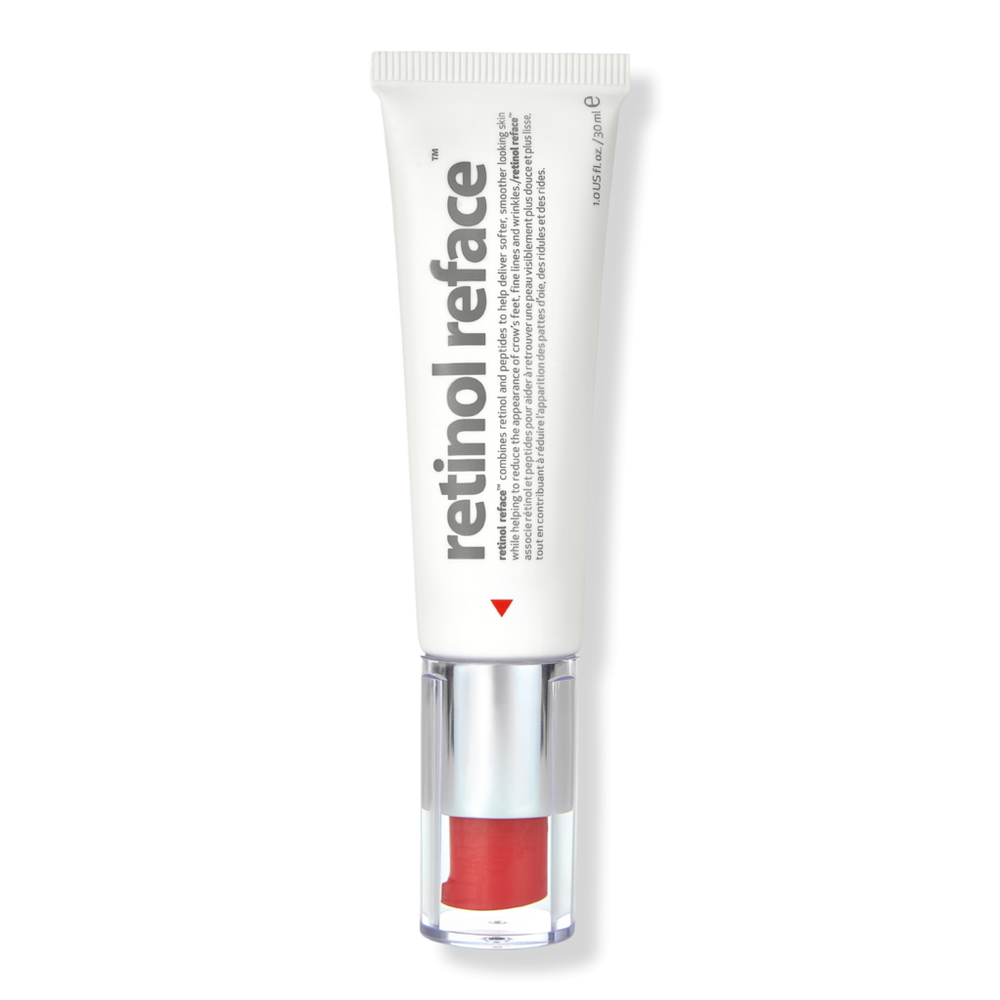 RETINOL REFACE SERUM 1.0OZ. Benefits: Quickly and effectively targets signs of aging by reducing the appearance of fine lines and wrinkles. Minimizes redness and enhances skin tone, hydration, firmness, radiance and brightness. Improves skin texture and can be used by acne-prone skin. Superstar ingredients retinol and bakuchiol work to increase cell turnover and improve skin elasticity. Features: Skincare Concerns: Fine Lines and Wrinkles, Uneven Skin Tone and Texture. Skin Type: Balanced, Dry, Combination, Oily, Sensitive and Acne-Prone. Ingredient Callouts: Free of Phthalates, SLS & SLES, Parabens, Colorants, Denatured Alcohol and Mineral Oil. Key Ingredients: RETINOL MICROSPHERES: A soft, pure retinol that is encapsulated in plant microspheres which slowly release into the skin. This optimizes the effectiveness of the active, allowing it to work throughout the day after having been applied at night.. RETINOL MICROSPHERES boasts low irritation potential and maintained long-term effectiveness.. BAKUCHIOL: The first natural alternative to retinol that is clinically proven to significantly reduce wrinkles and hyperpigmentation with minimal irritation. Clinically proven to reduce multiple signs of aging, reduce roughness, dryness, fine lines and wrinkles.. BAKUCHIOL also improves skin tone, hydration, elasticity, firmness, radiance and skin brightness.. RETINOL-LIKE PEPTIDE: A multi-faceted, anti-aging, retinol-like peptide technology that provides the same benefits as traditional retinol, while minimizing skin irritation or discomfort..
