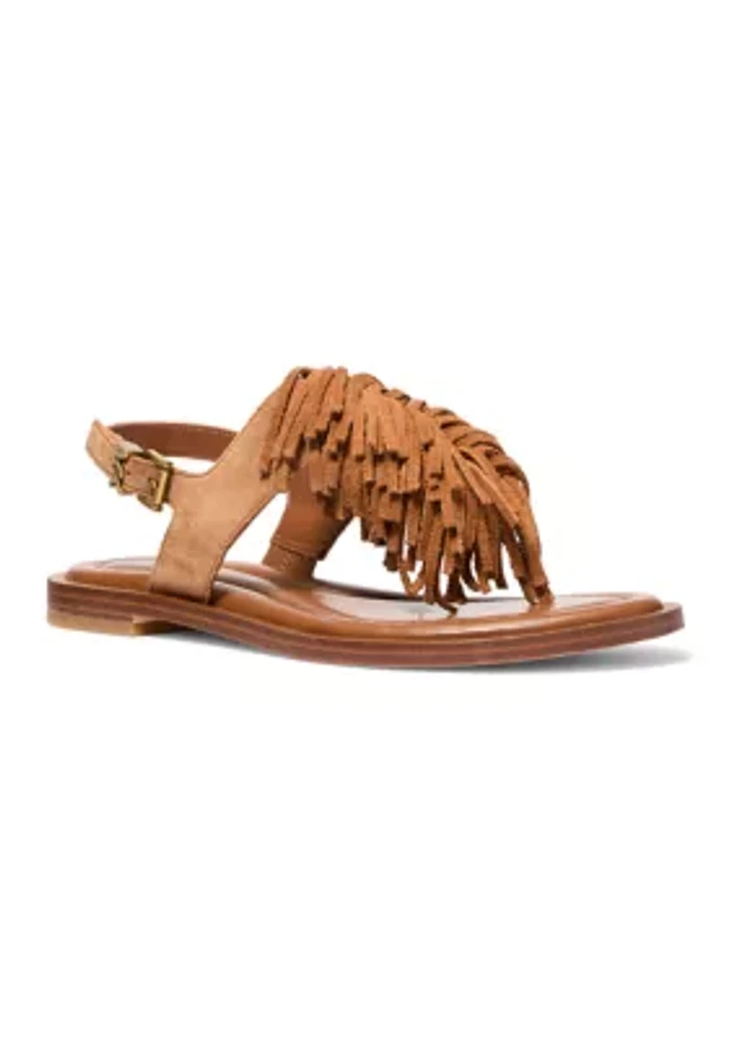 These stylish sandals from MICHAEL Michael Kors feature a chic fringe design, offering a flattering look that's perfect for everyday wear. Buckle closure Imported Product Specifications Medium width Material Lining: 100% synthetic; Outsole: rubber Suede