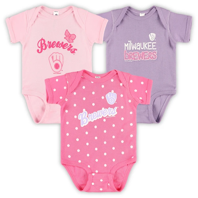 Infant Soft as a Grape Pink/Purple Milwaukee Brewers Rookie Creeper 3-Pack