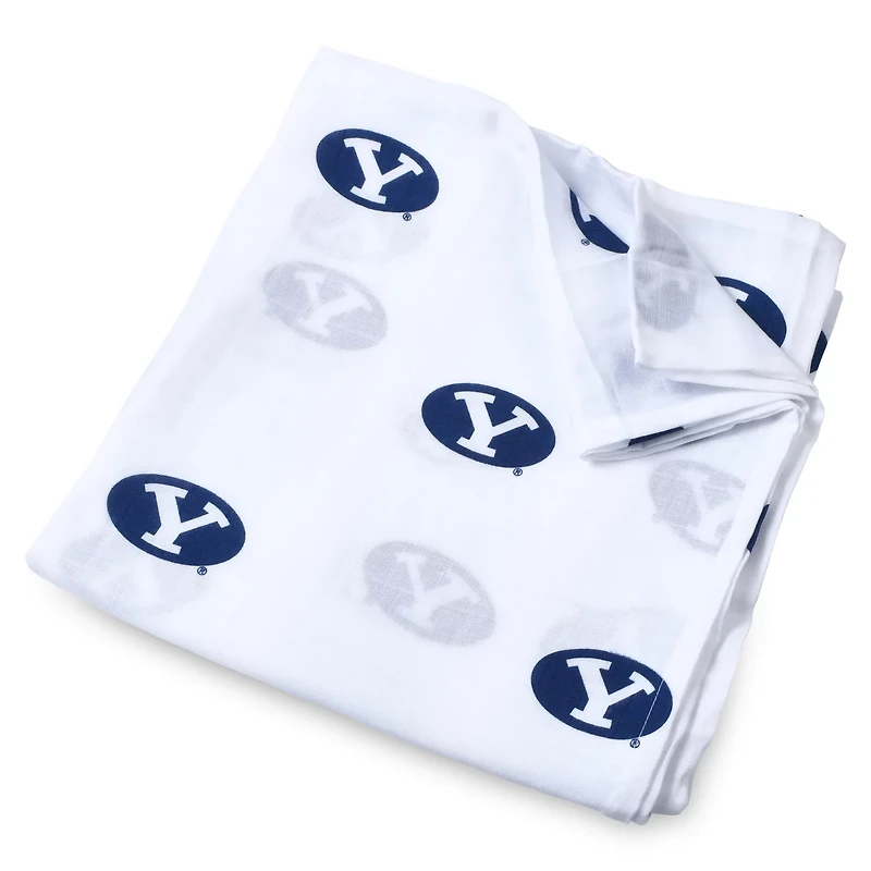Kickstart your little one's BYU Cougars fandom by picking up this 47'' x 47'' Muslin swaddle blanket from Three Little Anchors It features lightweight mesh fabric that is sure to provide them with a breathable feel The unmistakable team graphics make this the perfect option to wrap your young fan in during every BYU Cougars game day