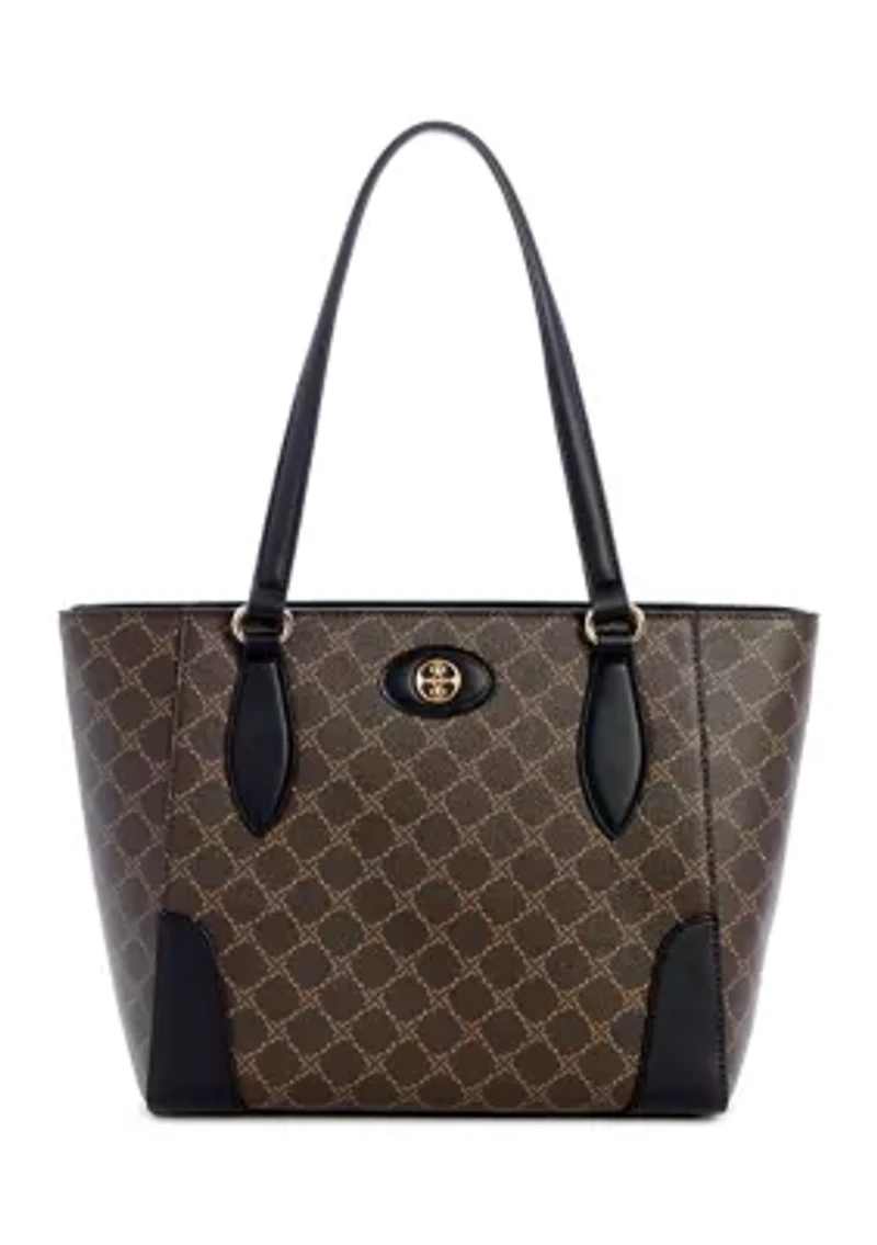 The Innes small tote from Nine West is featured in a shopper-style silhouette with stunning hardware. Complete with 2 magnetic compartments, interior organization pockets and pin letter branding. Zip closure Crossbody strap with 9" drop Exterior: hardware details Imported Product Specifications 15" x 11" x 5" Material & Care Faux leather Wipe clean