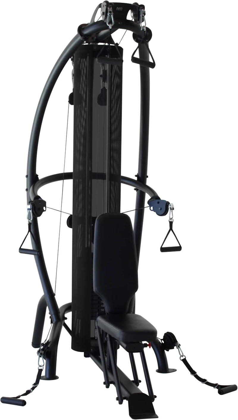 Add a versatile home gym to your workout equipment with the Inspire Fitness M1 Home Multi-Gym. This steel gym has a compact footprint for use in small spaces. The 6 pulleys, 2:1 resistance ratio and 165-pound weight stack helps tone muscles and build strength. The telescoping seat is height adjustable for comfortable use, while the ankle strap, D-handles and multi-rings add versatility.
