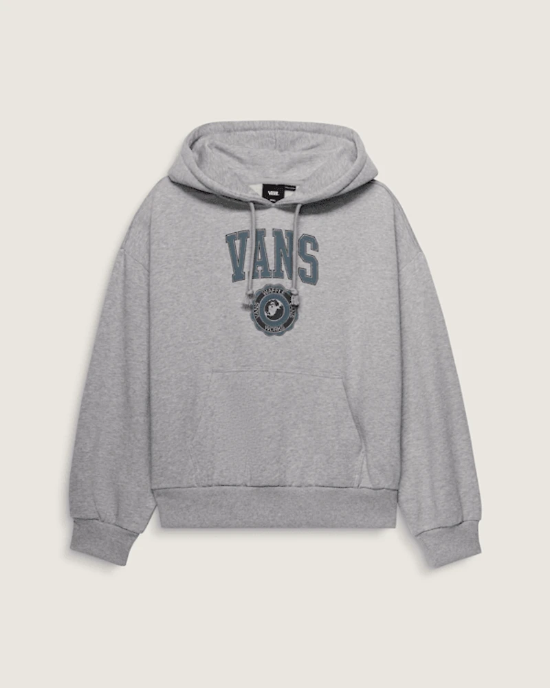 The Inter V Retro Pullover Hoodie is a classic pullover made of warm and cozy fleece. It also features a classic kangaroo pocket, ribbed details, and a screenprinted graphic of a Vans® logo with a shield on the front.