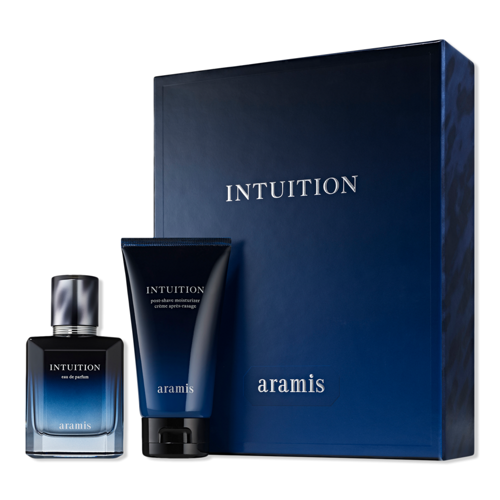 INTUITION EDP GIFTSET. Benefits: This woody, green neo-fougre blends airy citrus, Orris, and Patchouli with addictive leather warmth for a modern, magnetic scent.. Emotion-enhancing molecules help awaken the senses, leaving a lasting, masculine impression.. Includes: Eau de Parfum Spray (1.7 oz). Post Shave Moisturizer (2.5 oz). :