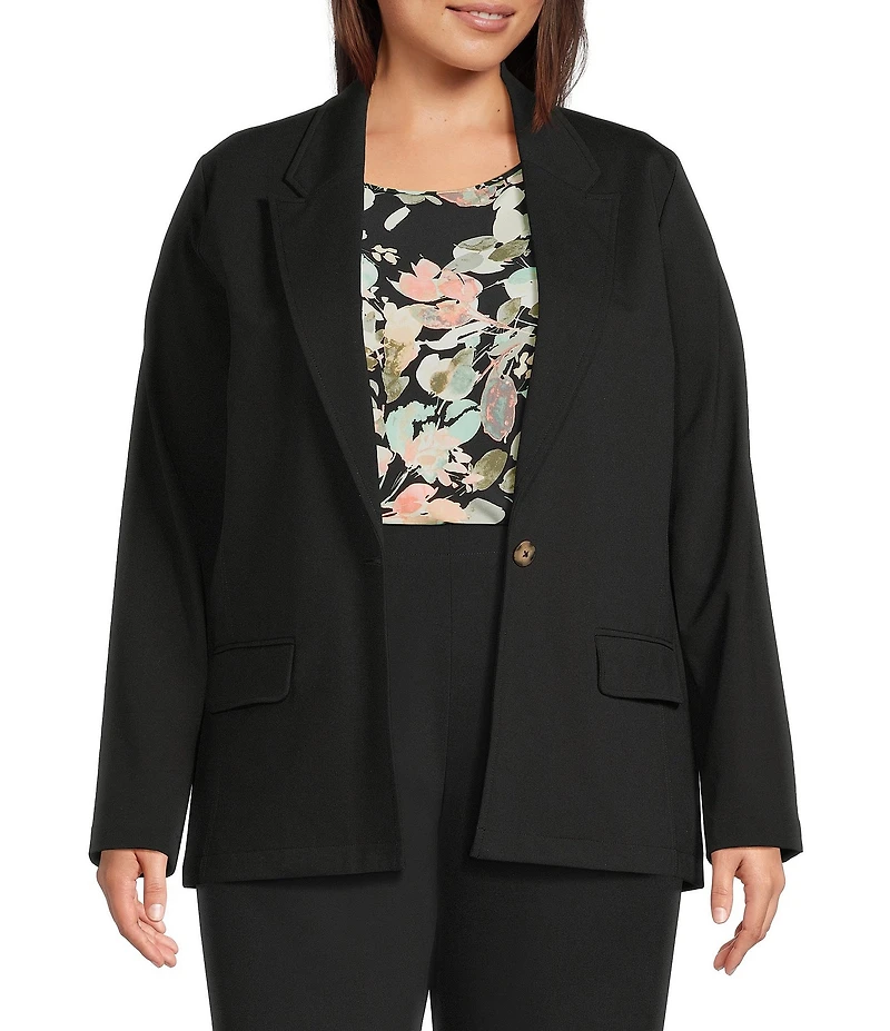 Investments Plus Size Performance Traveler Long Sleeve One Button Notch Lapel Blazer